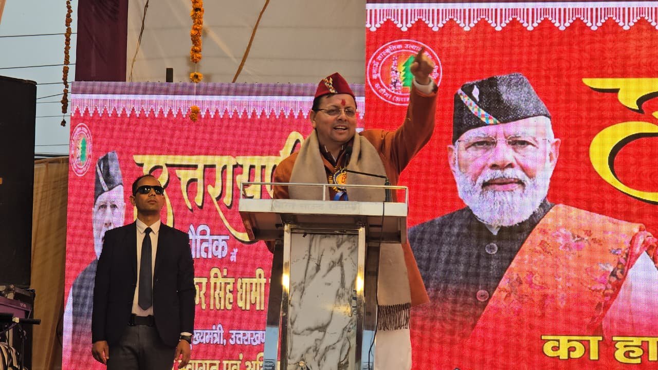 मुख्यमंत्री ने कहा कि मैं, पूरे विश्वास से कहता हूं कि खटीमा के विकास की गति को कभी रुकने नहीं दिया जाएगा। उन्होंने कहा कि हमने एक ही वर्ष में बेरोजगारी दर में रिकॉर्ड 4.4 प्रतिशत की कमी की है, जो राष्ट्रीय औसत से भी बेहतर है। लेकिन विपक्ष को यह सच दिखाई नहीं देता, क्योंकि उन्हें सिर्फ अफवाह और भ्रम फैलाने की राजनीति आती है। उन्होंने कहा कि देवभूमि की संस्कृति से न तो कोई खिलवाड़ होगा, न ही डेमोग्राफी से कोई समझौता किया जाएगा और न ही कानून व्यवस्था से कोई सौदा होगा। इसीलिए हमने लैंड जिहाद, लव जिहाद और थूक जिहाद जैसी घृणित मानसिकताओं के खिलाफ कठोरतम कार्रवाई की। उन्होंने कहा कि हमने दंगारोधी और धर्मांतरण विरोधी कानून लागू किए और सिर्फ कानून ही नहीं बनाए, बल्कि उन्हें धरातल पर भी उतारा। एक ओर जहां लैंड जिहाद के खिलाफ कार्रवाई करते हुए हमने 10 हजार एकड़ से अधिक सरकारी भूमि को भूमाफियाओं से मुक्त कराया। वहीं 250 से अधिक अवैध मदरसों को सील करने के साथ ही 500 से अधिक अवैध संरचनाओं पर बुलडोजर चलाकर ये भी साबित किया कि देवभूमि की एक-एक इंच भूमि पर किसी भी प्रकार का अवैध निर्माण बर्दाश्त नहीं किया जाएगा। इसके अलावा हमने “ऑपरेशन कालनेमि” के जरिए सनातन धर्म को बदनाम करने वाले ढोंगियों और पाखंडियों पर भी कार्रवाई की।
